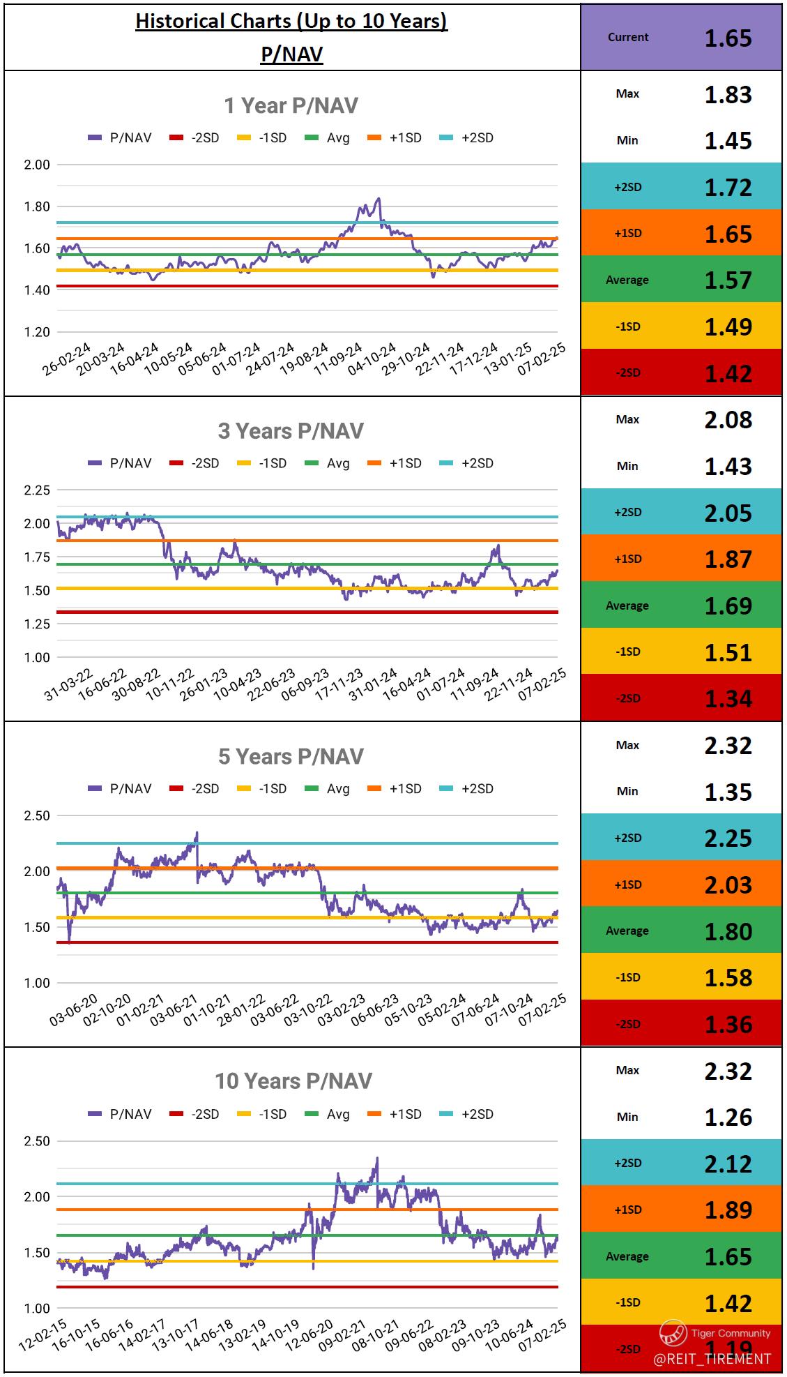 P/NAV: Above +1SD for 1y; Average for 3y, 5y & 10y