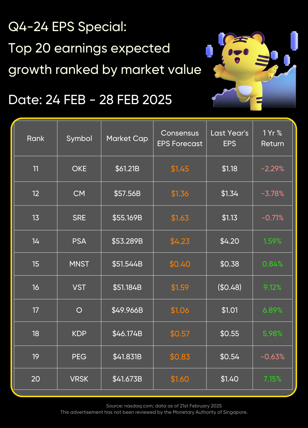 On February 24 to February 28, $NVIDIA(NVDA)$ , $Home Depot(HD)$, $Salesforce.com(CRM)$ , $Royal Bank of Canada(RY)$ ,$TJX Companies(TJX)$, $Lowe's(LOW)$, $Dell Technologies Inc.(DELL)$, $Workday(WDAY)$, $CRH PLC(CRH)$, $Autodesk(ADSK)$, $ONEOK Inc(OKE)$, $Canadian Imperial Bank of Commerce(CM)$, $Sempra(SRE)$, $Public Storage(PSA)$, $Monster Beverage(MNST)$, $Vistra Energy Corp.(VST)$, $Realty Income(O)$, $Keurig Dr Pepper Inc(KDP)$, $Public Service Enterprise Group Inc(PEG)$ , and $Verisk Analytics(VRSK)$ are expected to release their earnings, and consensus earnings per share forecasts are higher than data from the same period last year.