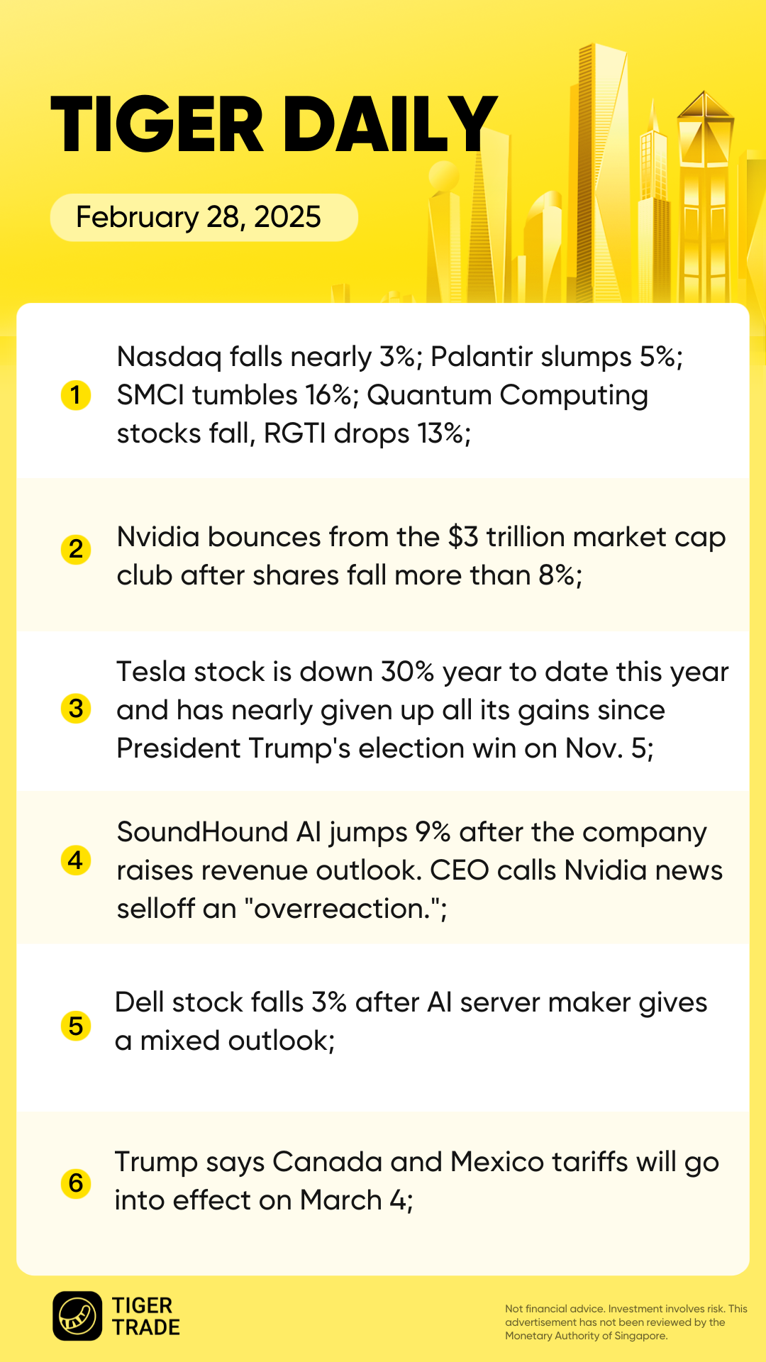 Nvidia Bounced from the $3 Trillion Market Cap Club After Shares Fall More Than 8%NVIDIA is out, leaving Apple as the sole member of the $3 trillion club.The chipmakerβs shares slumped more than 8% on Thursday following quarterly earnings, wiping out about $273 billion in value and giving the company a market cap of $2.94 trillion. The S&P 500 index fell 1.6%, and the Nasdaq dropped 2.8%.Nvidia is still the second most valuable U.S. tech company, behind Apple and ahead of Microsoft, one of its biggest customers.So far in 2025, Nvidia shares have lost 10% of their value, as the company faces investor concerns about export controls, tariffs, more efficient artificial intelligence models, and an overall slowing pace of growth.