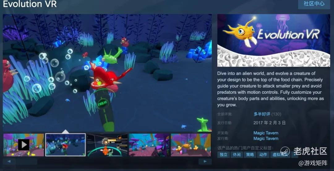 第三款是一款是2016年發行於Steam的VR遊戲,名爲《Evolution VR》,玩家通過孵化生物並參與生存競爭,探索異星世界。需搭配HTC VIVE設備,曾爲早期VR遊戲市場的熱門作品。