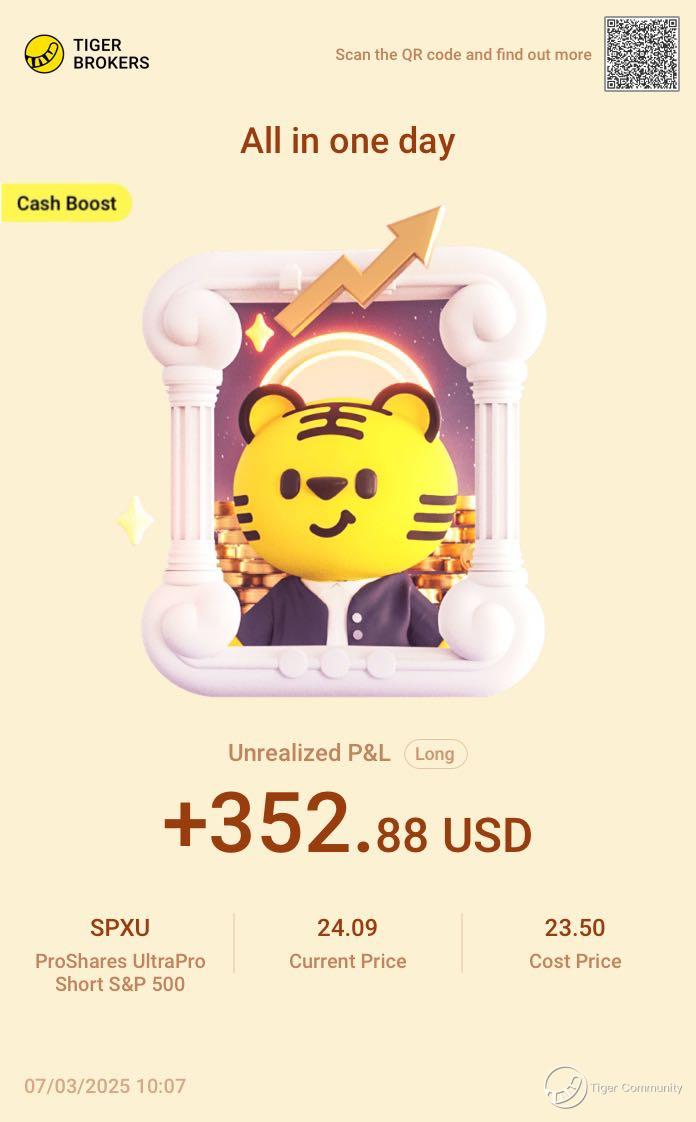 $ProShares UltraPro Short S&P 500(SPXU)$ Perfect timing for a short! Very satisfied with the gains—both the price movement and the returns met expectations. The market always presents opportunities, whether up or down, as long as you stay sharp and act decisively.