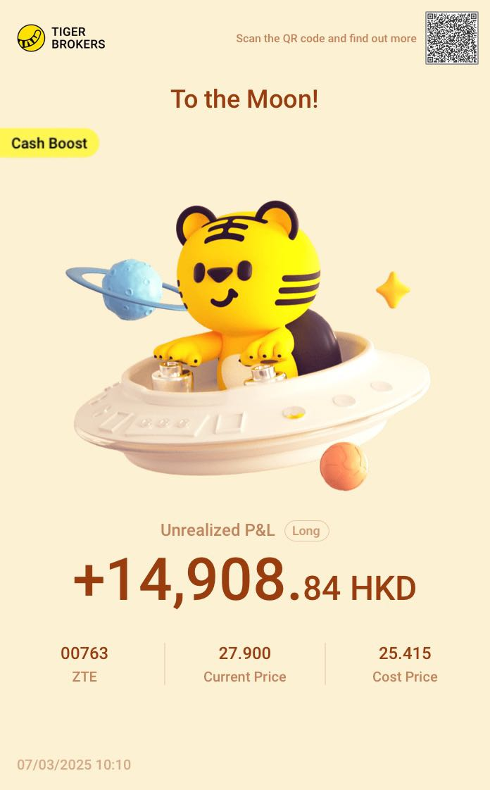 On March 7, congrats to @JesseBerkeley winning HKD 14908 by investing in $ZTE(00763)$ with a CBA.🎉🎉JesseBerkeley noticed that, for the first time, 6G has been included in China's government work report, and ZTE is positioned at the forefront of this technological revolution, and its future potential is limitless.
