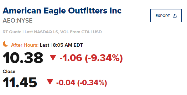 Barclays將American Eagle (AEO)的評級從持有降低至減持,目標價降低至10美元。