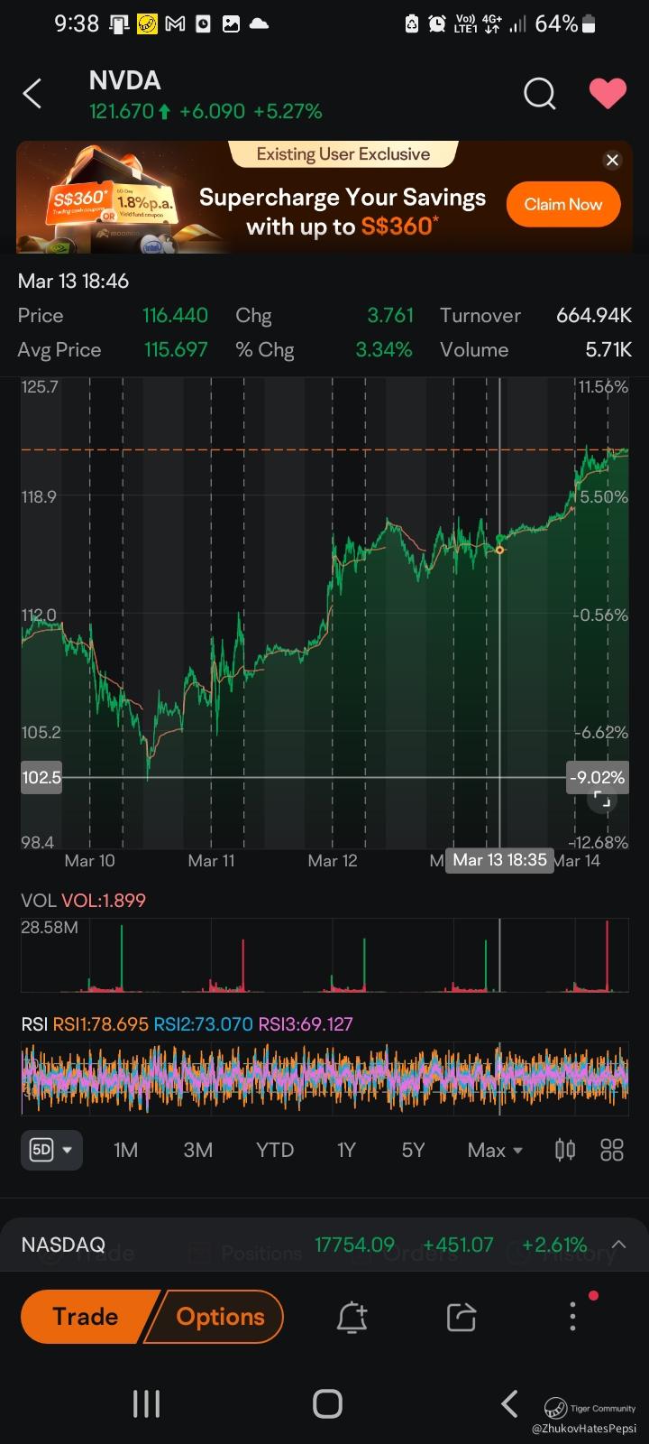 As soon as my first trade at 117, became red, I should have kept calm and not averaged in, I got advice from a senior trader that NVDA usually goes down in cycles of about 3 days. He also said that when you play long calls that go red, you need to play short calls when the stock dips a lot and take profit when the stock bounces. That way your profit can cover the losses of your long calls.