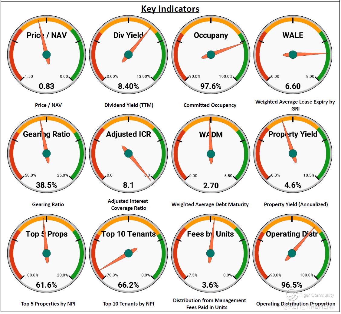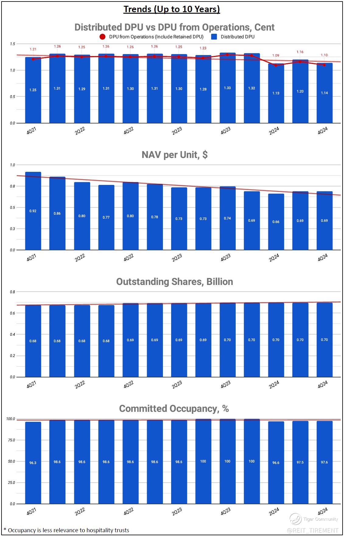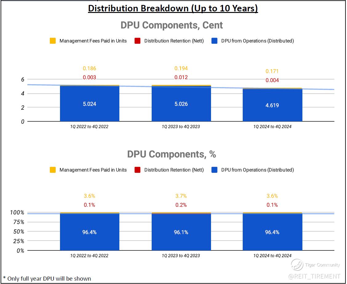 Slight Downtrend: DPU from Operations, Top 5 Properties' Weightage, Top 10 Tenants' Weightage, Operating Distribution Proportion