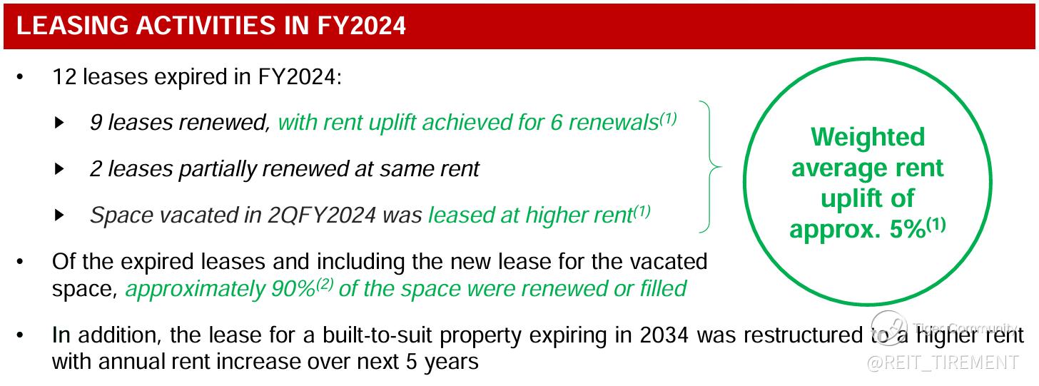 DHLT achieved a weighted average rent reversion of approximately 5% for FY24.