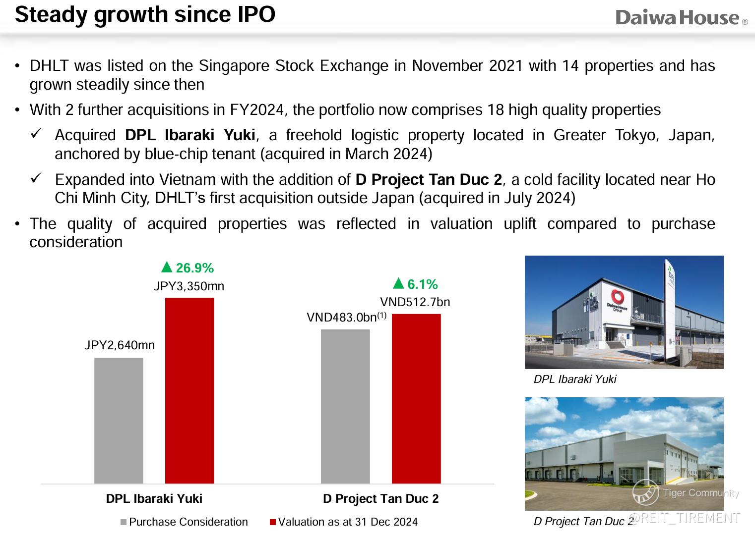 In July 2024, DHLT completed the acquisition of D Project Tan Duc 2 in Vietnam, marking its first property outside Japan.