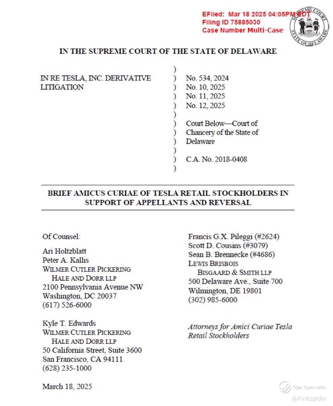 $TSLA NEWS⚡️: Tesla Retail Shareholders filed an Amicus Brief to support Tesla in the reversal of the Chancery Court.