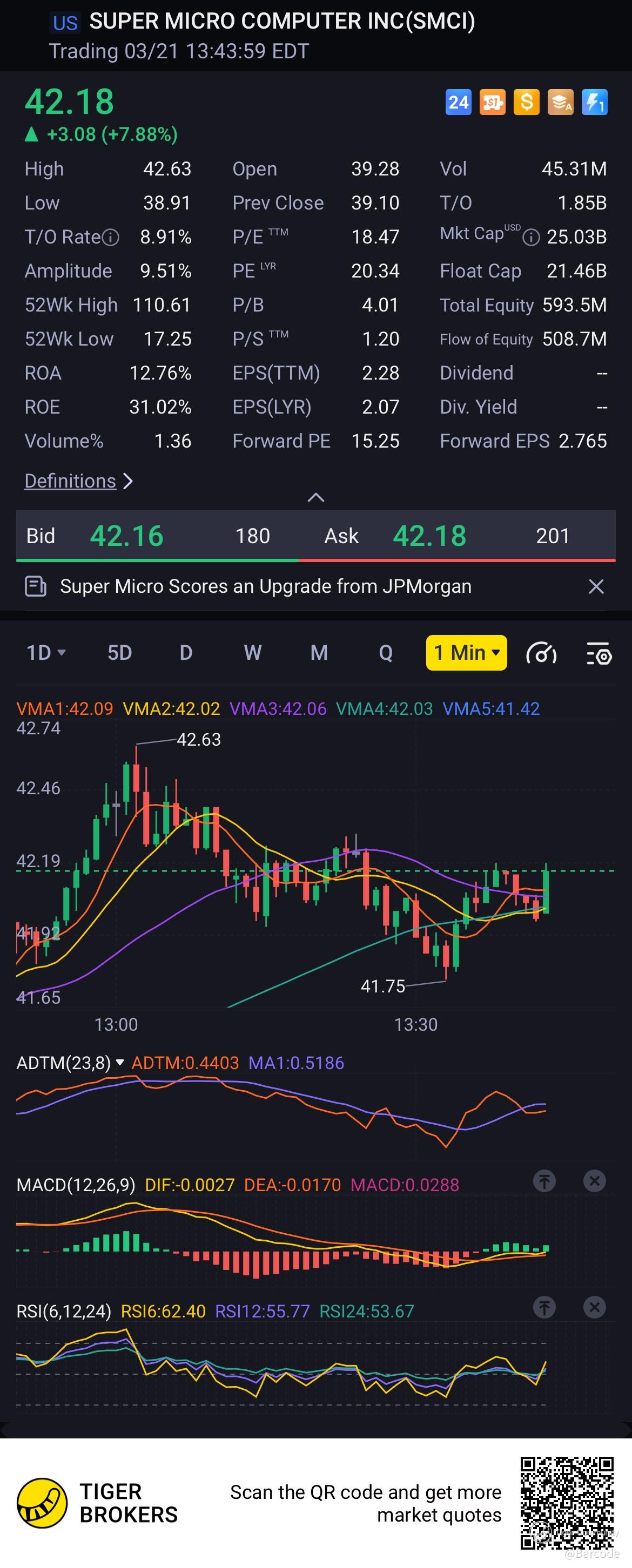 • Price Action Context: The stock’s 52-week range spans $17.25 to $110.61. At $42.32, SMCI is challenging the recent high of $42.63. A break above this level could target $45.00, aligning with JPMorgan’s revised price target, with further upside potential to $47.00 if momentum holds.