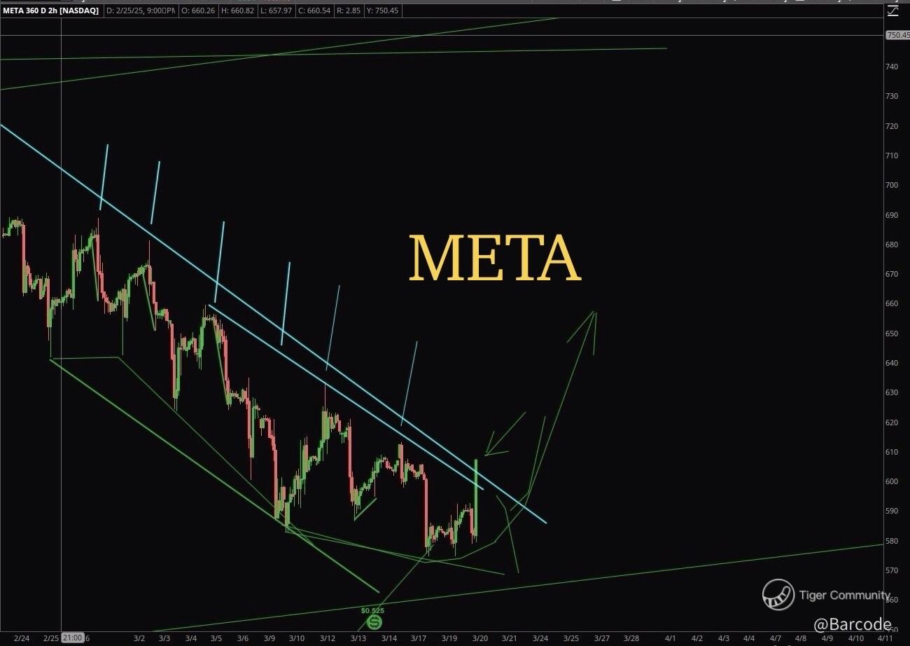 $META Reversing after an intermediate downtrend, breaks descending channel, targets $680. AI momentum surges with volume confirmation, signalling institutional buying. Traders, grab this bullish pivot for alpha! ๐