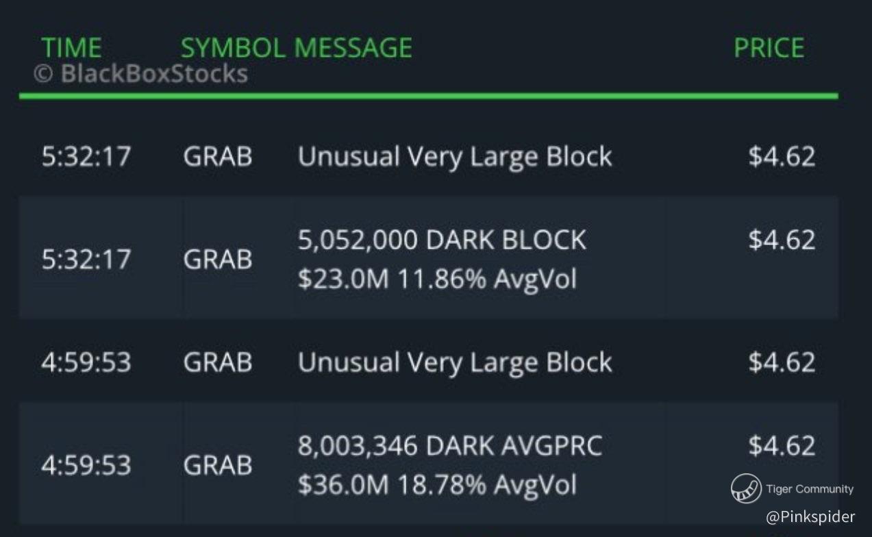 One thing I will add — we have seen 20M+ shares of $GRAB traded on the dark pool over the past few days, 13M were traded yesterday.