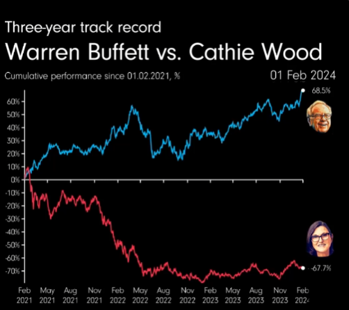 1.Warren Buffett vs. Cathie Wood from 2021-2023 đ¨ $Berkshire Hathaway(BRK.A)$ $Berkshire Hathaway(BRK.B)$ $ARK Innovation ETF(ARKK)$