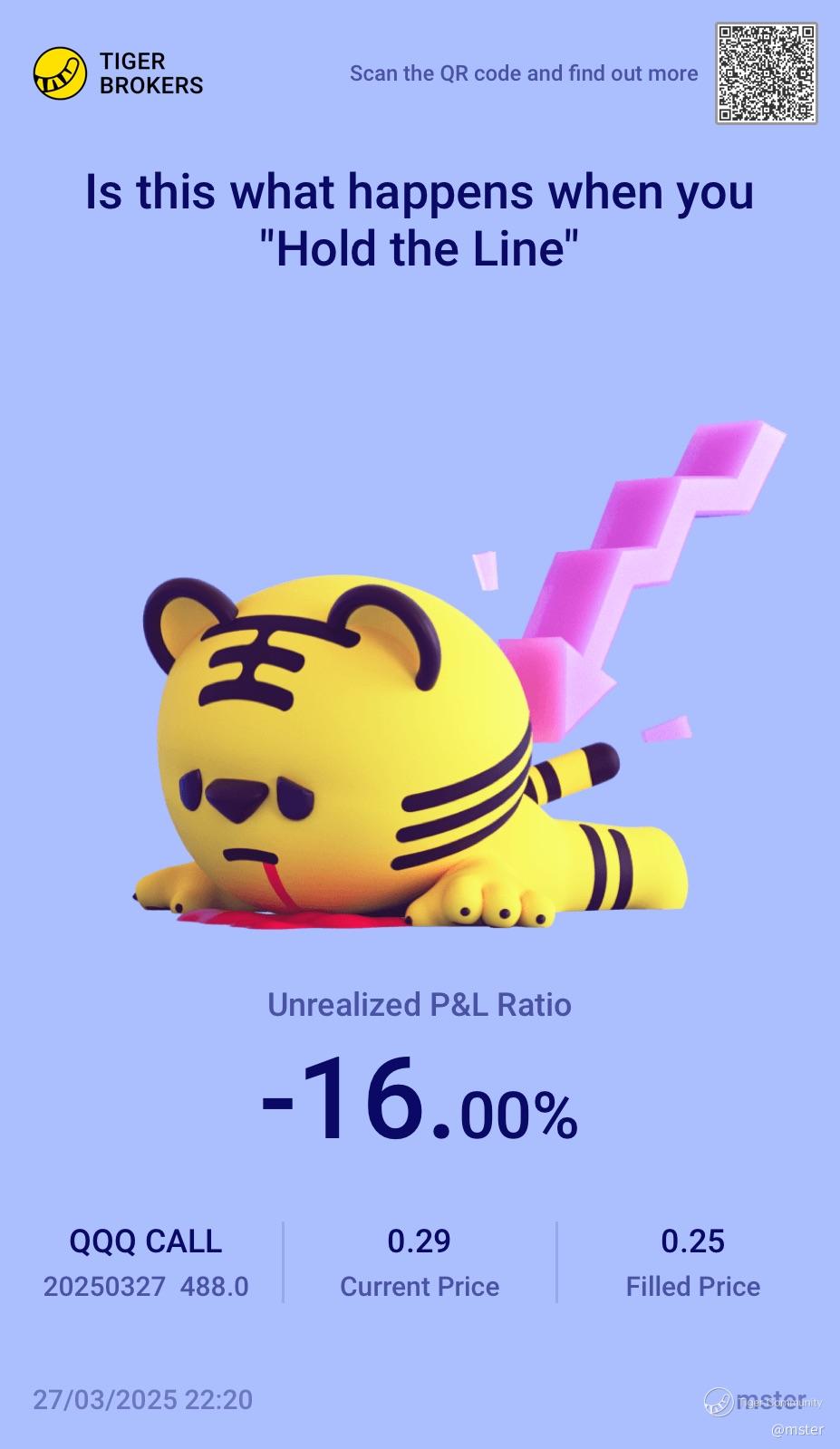 $QQQ 20250327 488.0 CALL$ Back to 0DTE. Actually tried to sell covered call option daily, however due to the underlying in hand is of higher value, this CC trying to open are usually quite far out strike. Thus often don't get filled once the market move in the opposite direction. Need to mitigate the risk, unfortunately it's all part of the game. $QQQ 20250327 488.0 CALL$