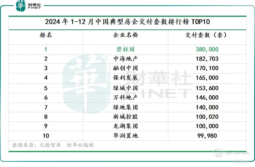 In the ranking of delivered real estate enterprises in 2024, Country Garden delivered 380,000 sets, surpassing Zhonghai and Rongchuang (01918. HK), Poly Development (600048. SH), Green City (03900. HK), Vanke (000002. SZ) and others ranked first in the list.