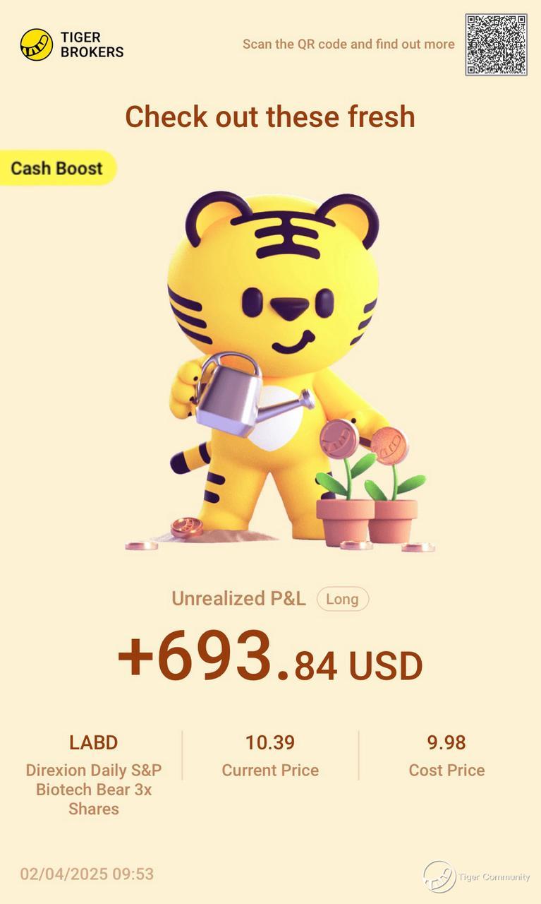 On top of that, healthcare always carries a bit of a defensive edge. That’s why I played both sides with $Direxion Daily S&P Biotech Bull 3x Shares(LABU)$ and LABD. Looking at how things are shaping up now, I’d say that was a damn smart move. This win was mine to take!