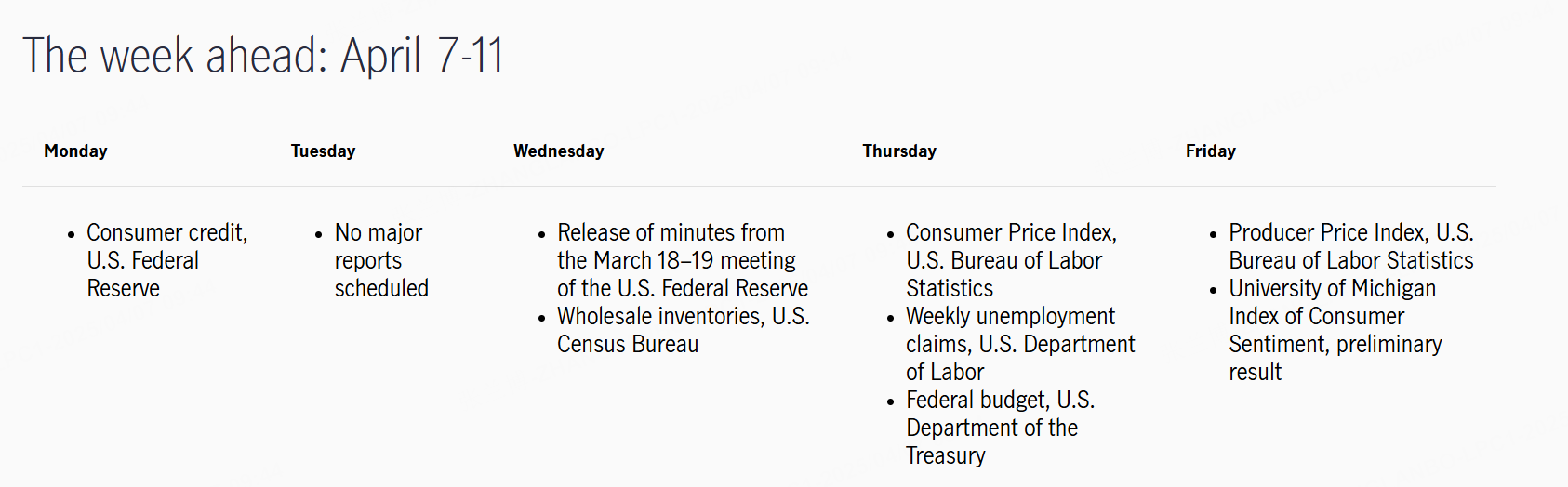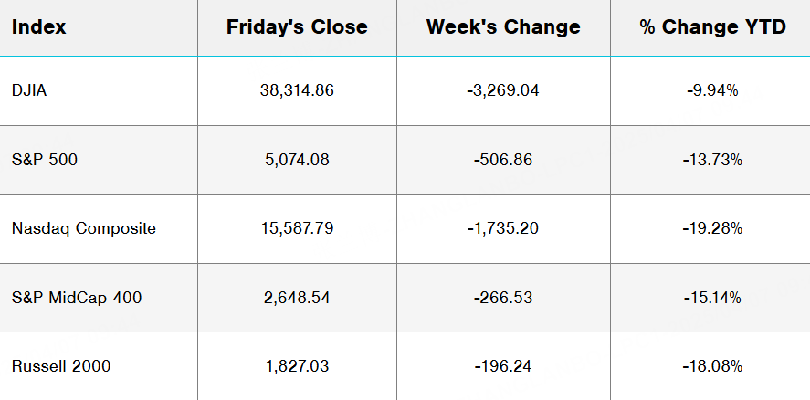 Stocks fell sharply in response to the Trump administrationβs announcement of a broad range of harsher-than-expected tariffs, which fueled concerns around the potential for slowing economic growth, resurgent inflation, and a possible recession. Small-cap stocks lagged as the Russell 2000 Index lost about 10% and ended the week down over 30% from its all-time high, while the S&P 500 Index posted its worst weekly performance in over five years.