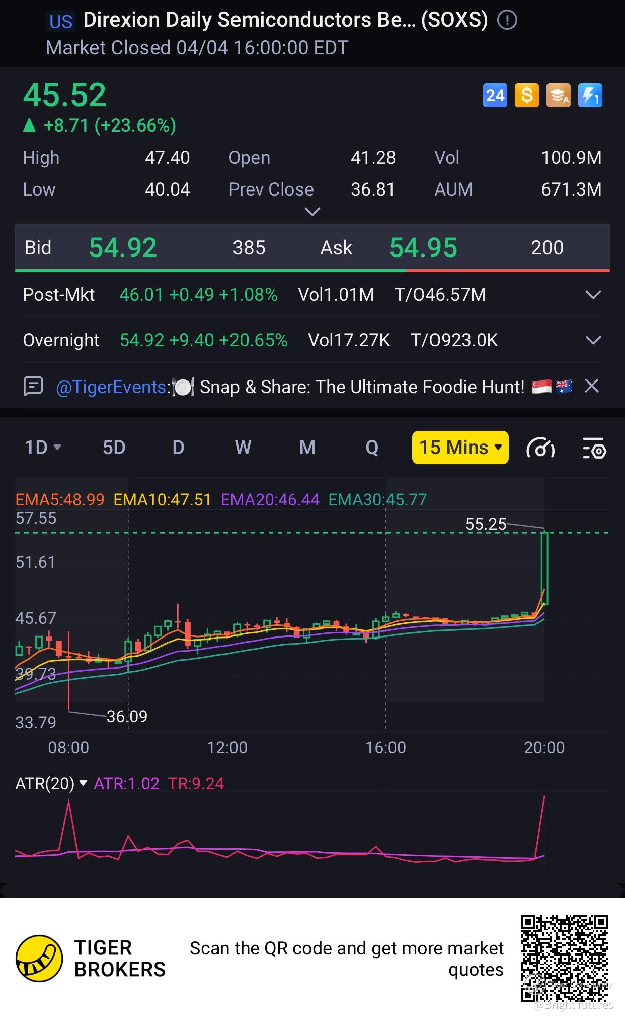 $Direxion Daily Semiconductors Bear 3x Shares(SOXS)$ its big green