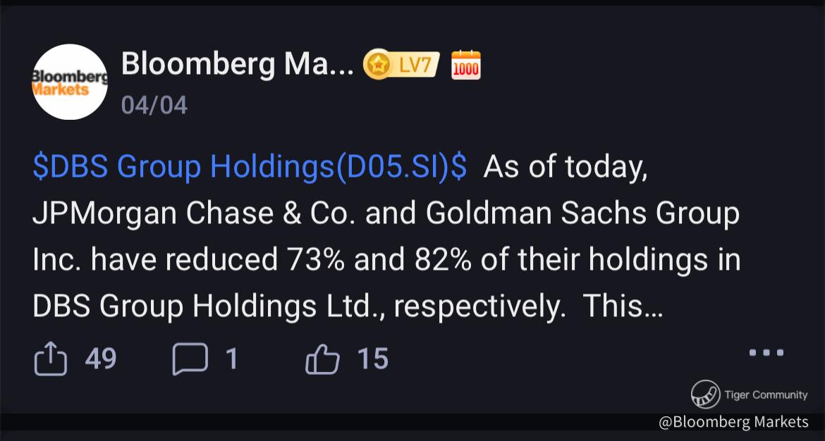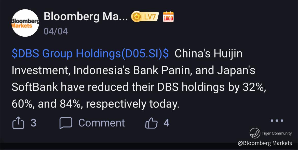 $DBS Group Holdings(D05.SI)$ Strong institutional sells continued today with major financial institutions continue to offload DBS shares.
