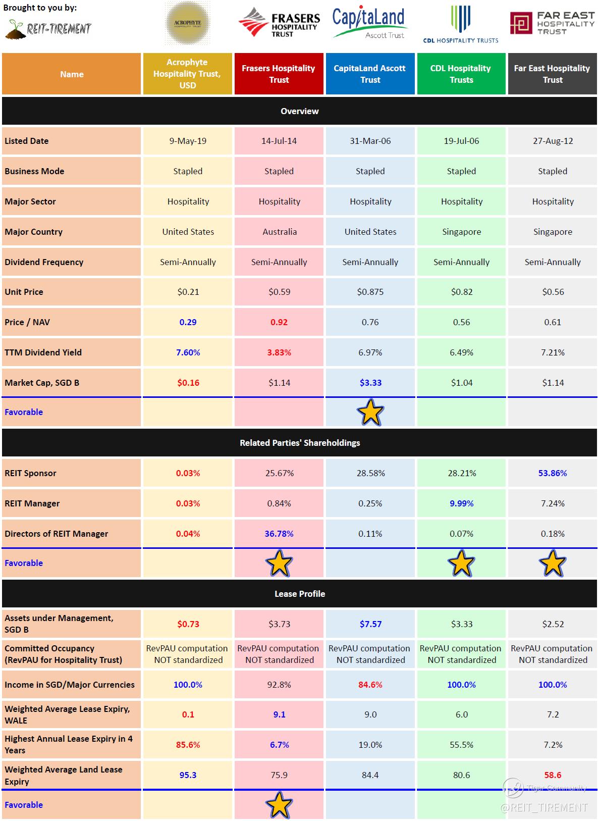 $CapLand Ascott T(HMN.SI)$ $Far East HTrust(Q5T.SI)$ $Frasers HTrust(ACV.SI)$ $CDL HTrust(J85.SI)$ $Acro HTrust USD(XZL.SI)$