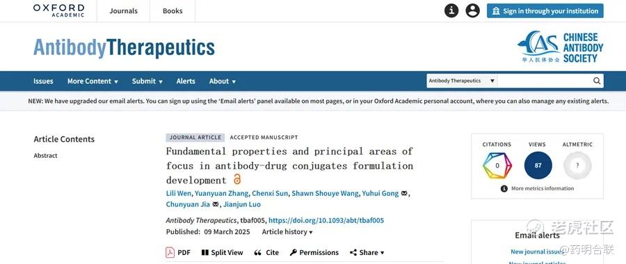 近日,全球領先的生物偶聯藥物合同研究、開發與生產組織(CRDMO)藥明合聯(WuXi XDC,股票代碼:2268.HK),在華人抗體協會旗下期刊、牛津大學出版社出版的Antibody Therapeutics上發表了題爲“Fundamental Properties and Principal Areas of Focus in Antibody-Drug Conjugates Formulation Development”的綜述論文。