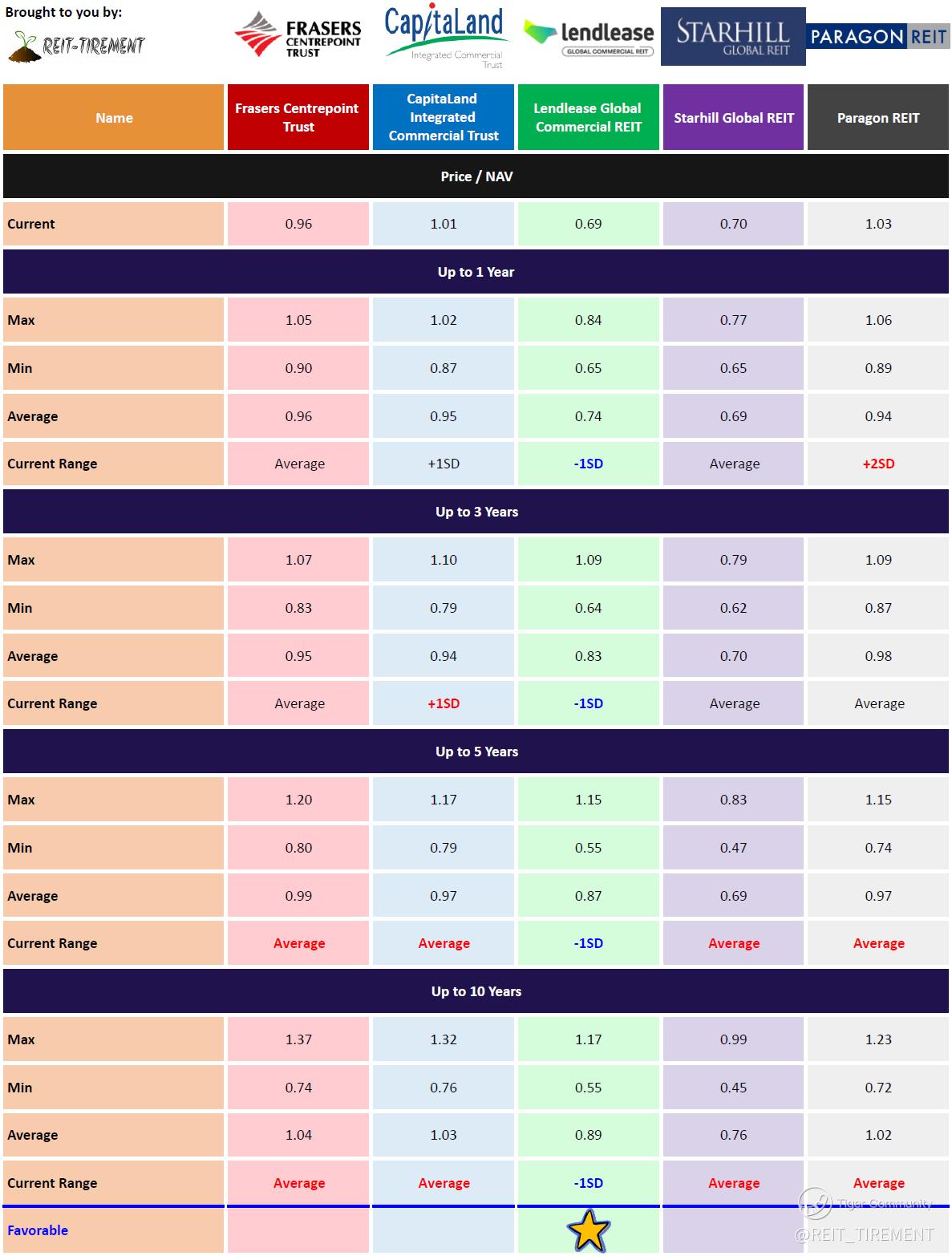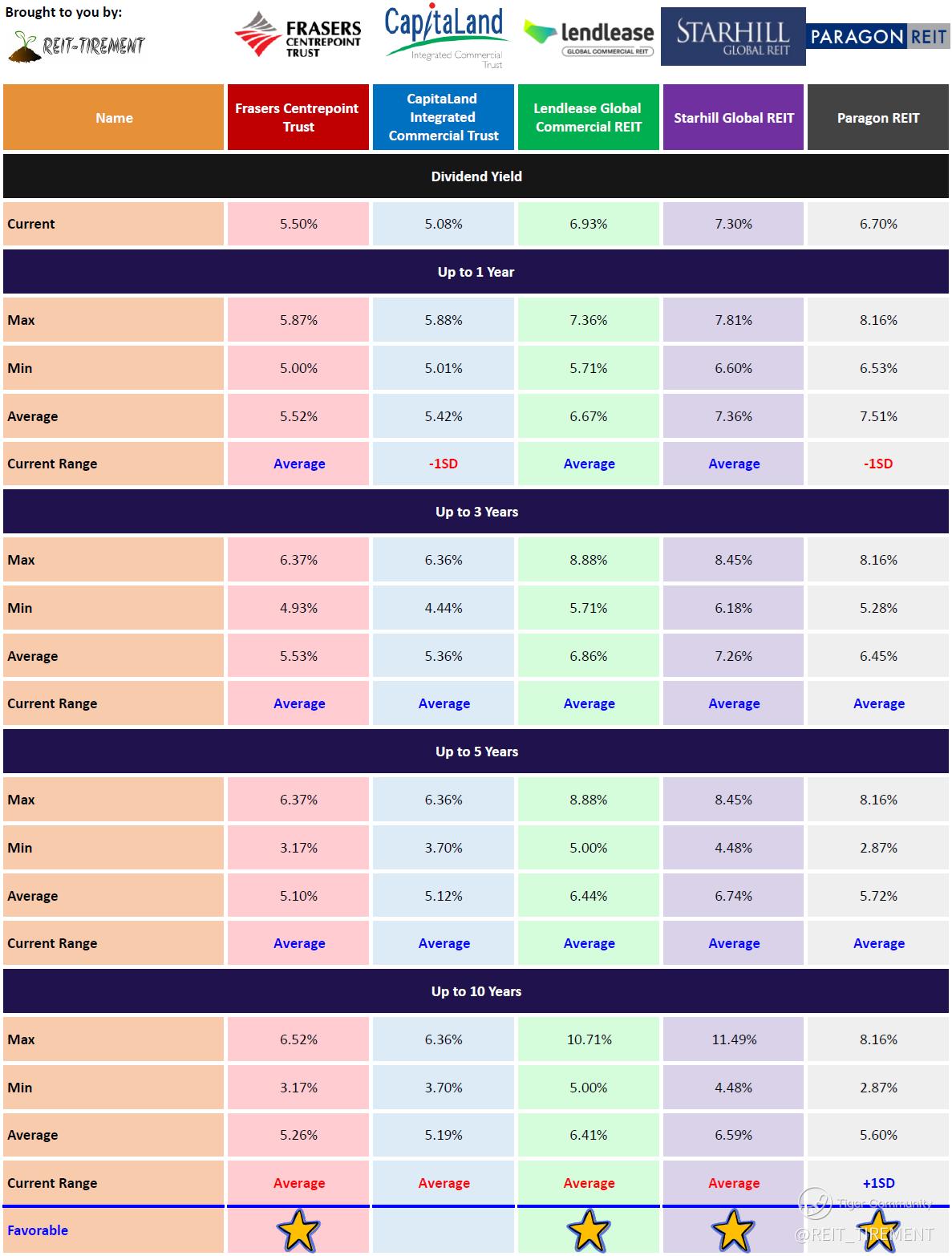 $Frasers Cpt Tr(J69U.SI)$ $CapLand IntCom T(C38U.SI)$ $Lendlease Reit(JYEU.SI)$ $StarhillGbl Reit(P40U.SI)$ $PARAGON REIT(SK6U.SI)$