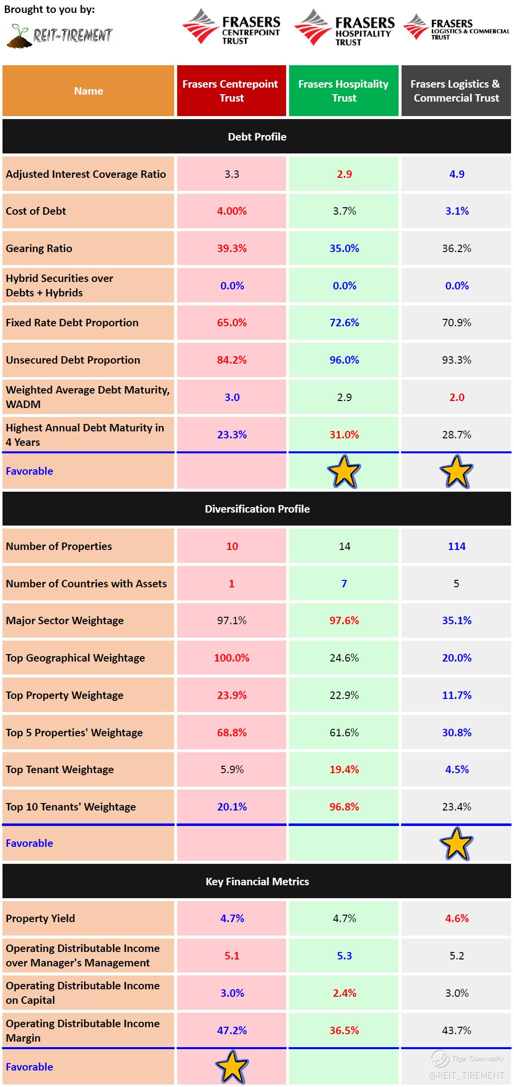 The above is just a quick comparison without weightage assigned. For more information, check out REIT-TIREMENT