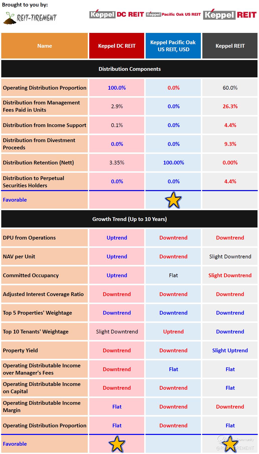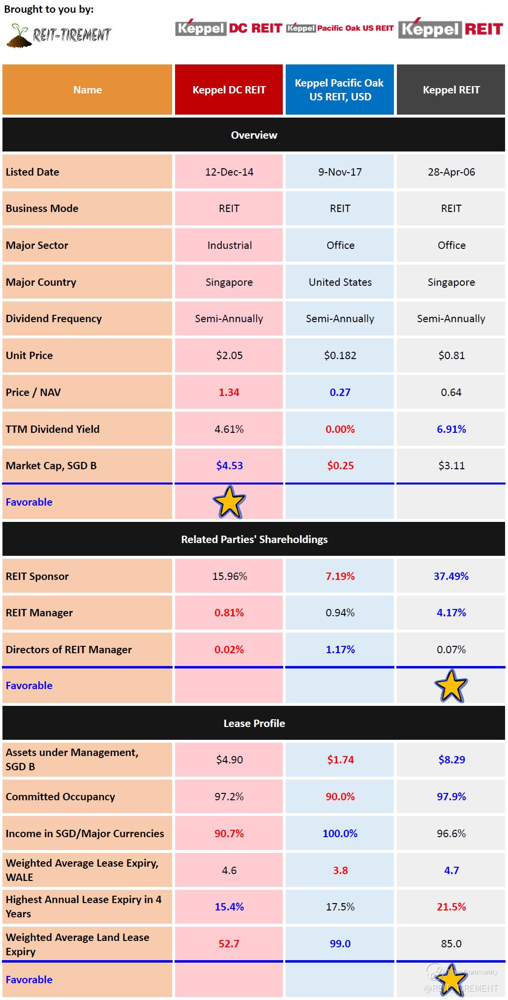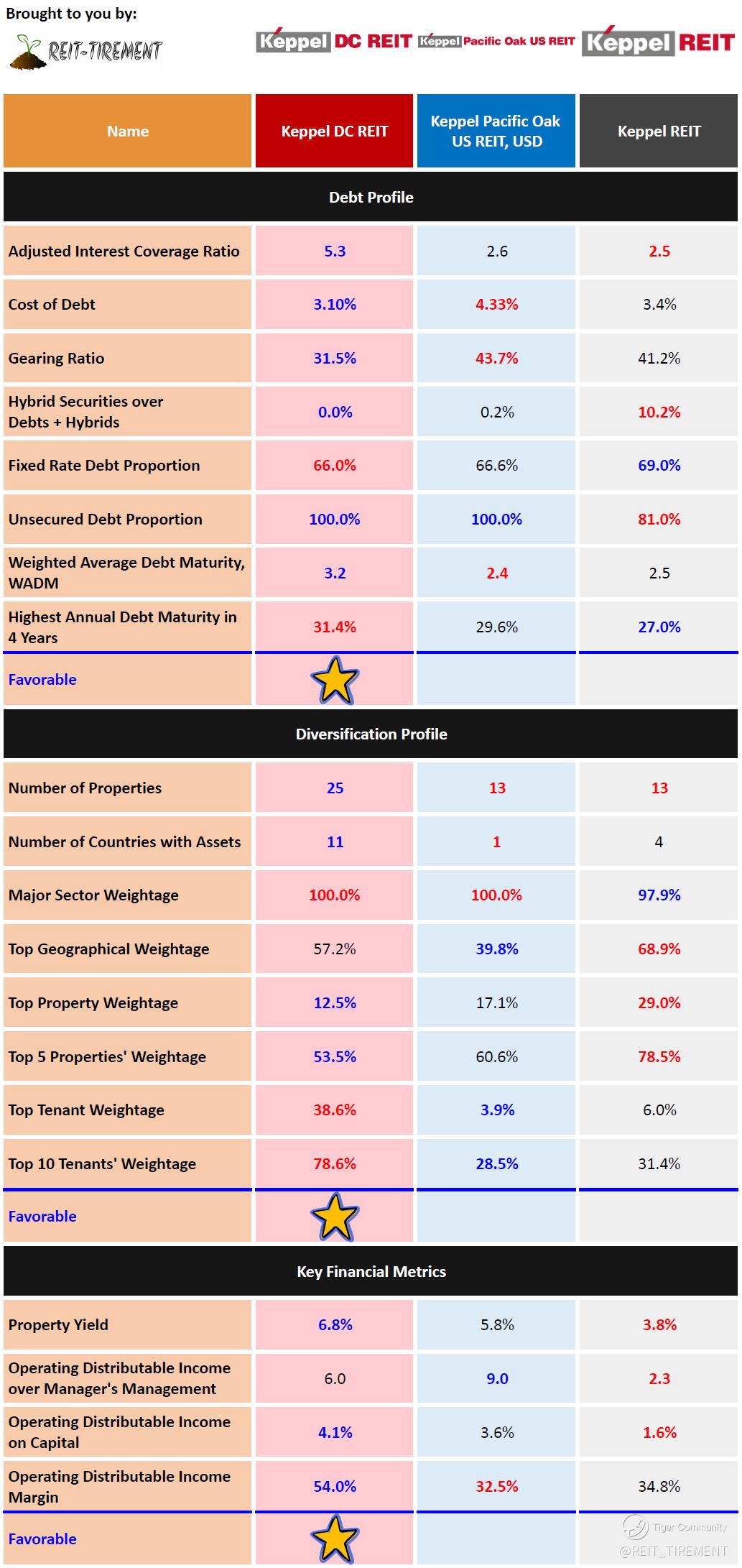 The above is just a quick comparison without weightage assigned. For more information, check out REIT-TIREMENT