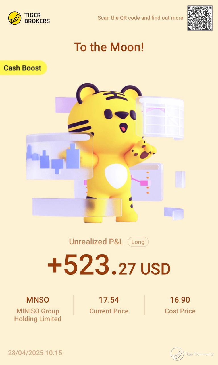 $MINISO Group Holding Limited(MNSO)$ Tariff delay finally a breather! Huge relief for Miniso’s overseas business. Most of the exports can shift to Southeast Asia now. Back home, Yonghui’s boost to domestic demand is kicking in too. With headwinds clearing out abroad and internal tailwinds building up, it’s about time MNSO started moving up!Not to mention, just the Yonghui stake alone is worth over 15 billion RMB now. It feels so good holding onto this one.