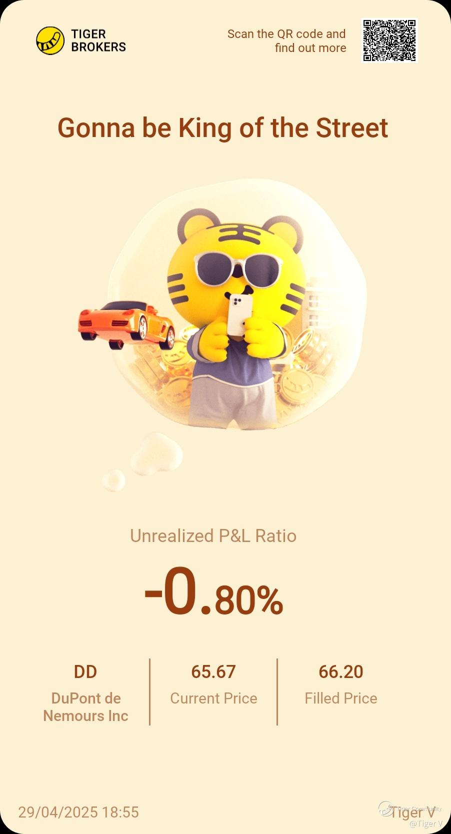 $DuPont de Nemours Inc(DD)$ I made an additional investment in DuPont (DD) following its recent pullback, which I view as a strategic buying opportunity. Despite near-term tariff concerns, DuPont's limited exposure to Chinese imports and strong diversification efforts position it well. RBC highlights the water and protection segment’s improvement, growth in electronics, and potential M&A in healthcare and water as key expansion drivers. Most importantly, the upcoming spinoff of the electronics business could unlock significant value, serving as a major catalyst. I remain optimistic about DuPont’s long-term growth potential amid temporary macro uncertainty.