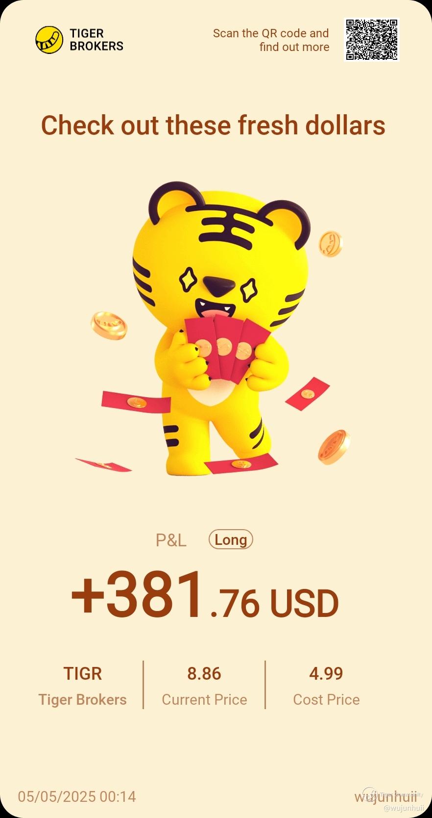 $Tiger Brokers(TIGR)$ one of my bigger profit