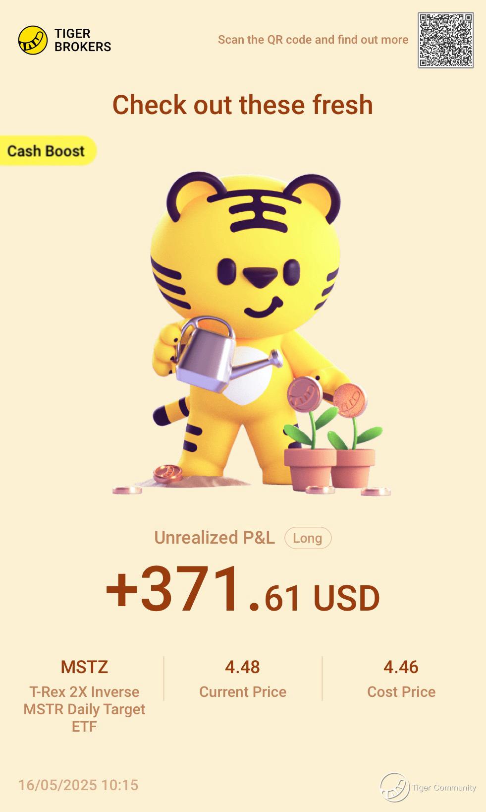 $T-Rex 2X Inverse MSTR Daily Target ETF(MSTZ)$ BTC barely moved, but this thing pumped like crazy?! I’m honestly confused lol. Not to sound too “humblebrag,” but I made money out of nowhere... like it just landed in my lap. No complaints though,cash is cash. I’m happy and mildly annoyed at the same time