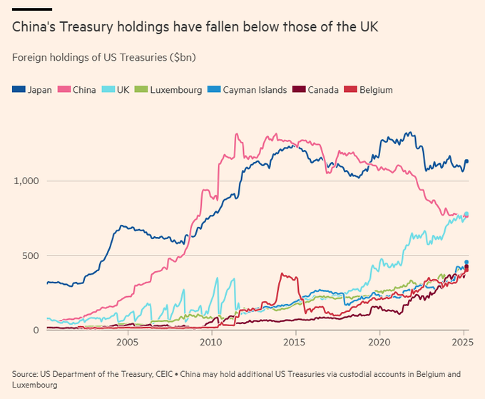 4.United Kingdom has passed China as the 2nd largest holder of U.S. Treasuries for the first time in 25 years
