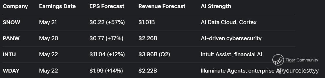 Recent earnings from Cloudflare (NET) and ServiceNow (NOW) set a high bar, with both showcasing AI-driven growth—Cloudflare with network security and ServiceNow with workflow automation. These results raise expectations for SNOW, PANW, INTU, and WDAY to deliver.