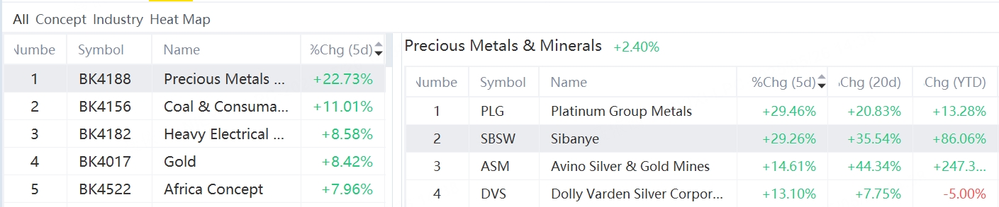 The best-performing concepts is Precious Metals & Minerals. Considering the different perceptions of the stock, this time TigerPicks chose $Sibanye(SBSW)$ to have a fundamental highlight to help users understand it better.