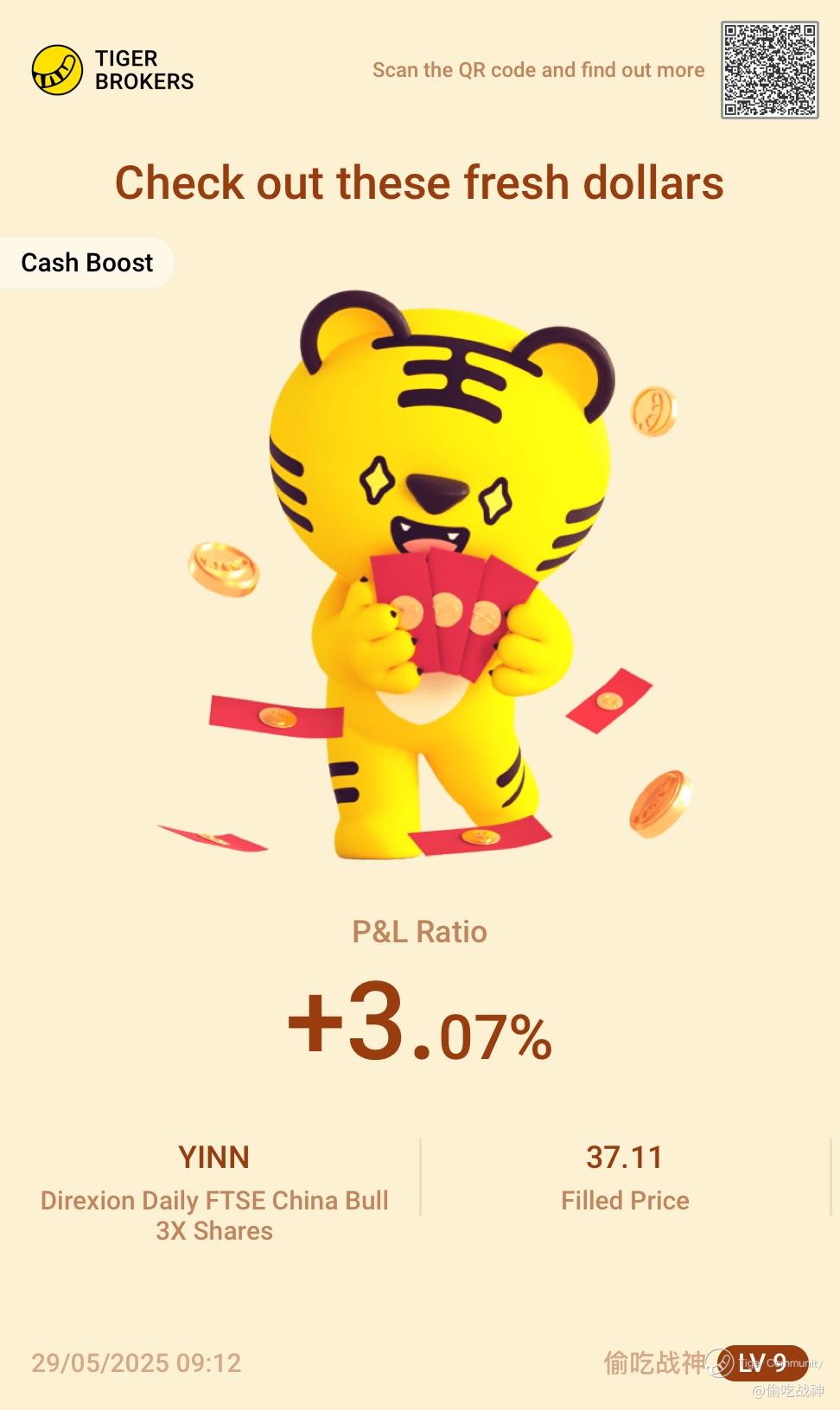 $Direxion Daily FTSE China Bull 3X Shares(YINN)$ I've closed 450 Share off CBA profiting approx 500USD. Rebound T, always easier