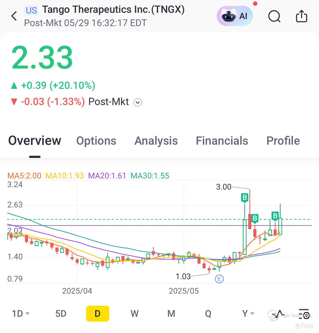 The biotech sector is known for its volatility, and TNGX is no exception, with its stock price ranging from $1.03 to $12.015 over the past year. However, this volatility presents a buying opportunity at the current $2.33 level. The combination of a strong clinical pipeline, financial stability, and analyst enthusiasm suggests that TNGX could deliver substantial returns if its therapies prove successful. The potential for a partnership-driven revenue boost or a breakthrough trial result could catapult the stock toward its target price.