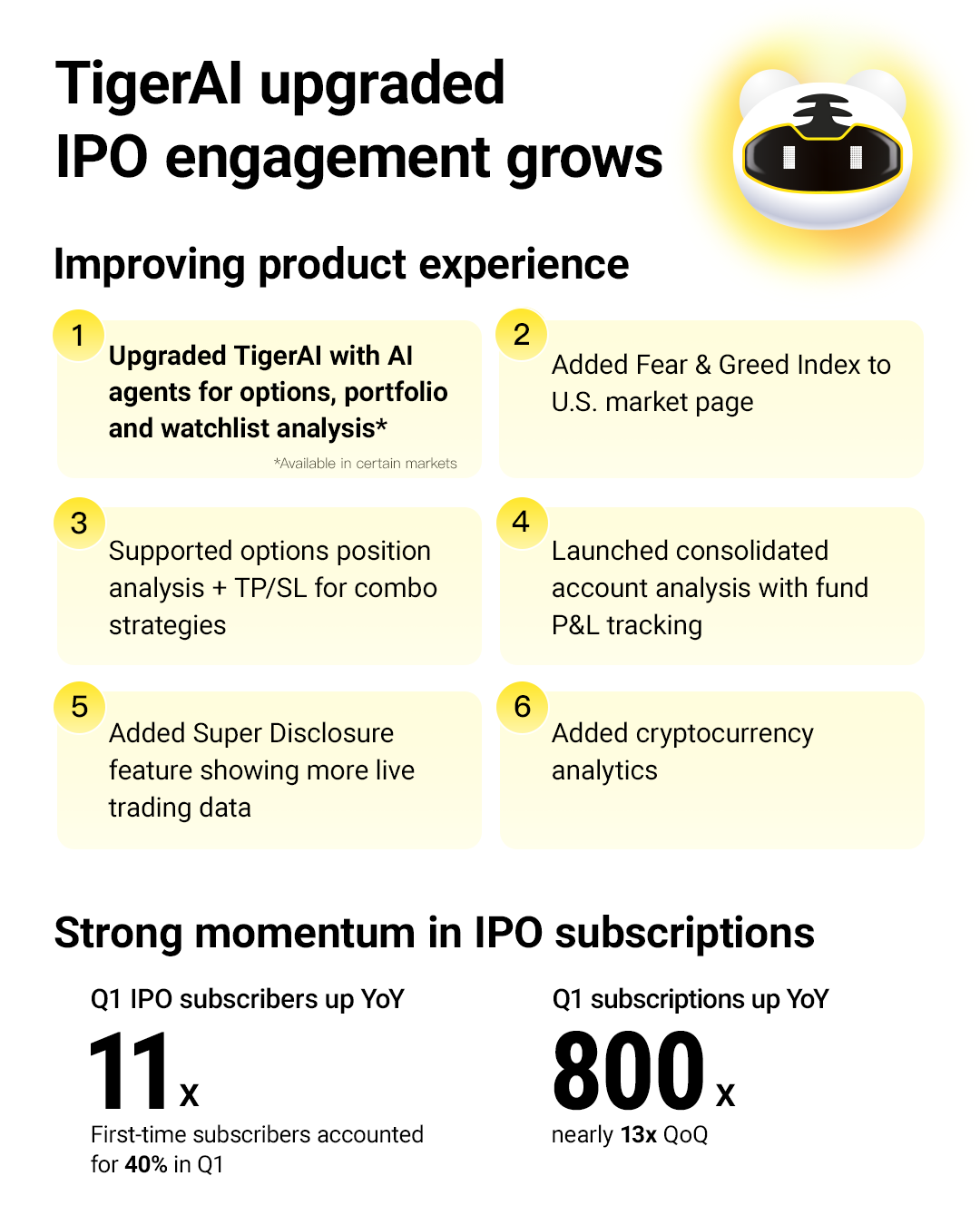 "To further enhance the trading experience for platform users, Tiger has continuously optimized and innovated its product features. Recently, we also officially launched cryptocurrency deposit and withdrawal services in Hong Kong. Investors can now seamlessly manage mainstream cryptocurrencies like Bitcoin (BTC) and Ethereum (ETH) through our flagship trading app. Additionally, Tiger has strengthened its AI capabilities with the upgrade from TigerGPT to TigerAI, now offering watchlist, portfolio and options analysis for smarter, data-driven decisions. We've also enhanced options and US stock trading with features like options position analysis, TP/SL for combo strategies, and historical intraday data — improving user experience and lowering the barrier to global investing."
