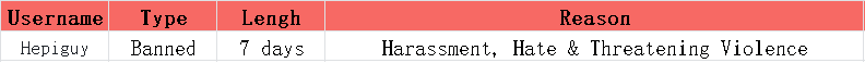 Here is the List of Banned Users for this week: