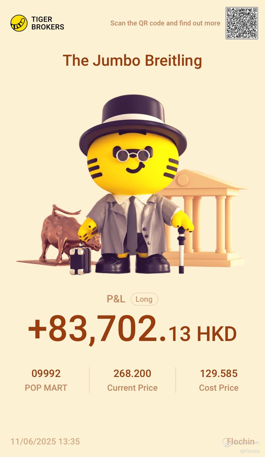 100 days into investing this stock, yielding a solid 107% gain thus far. Honestly, I'm not a fan of that cute and ugly Labubu. Somehow this stock is showing extremely bullish trend. Looks like the bull run is still not over yet.