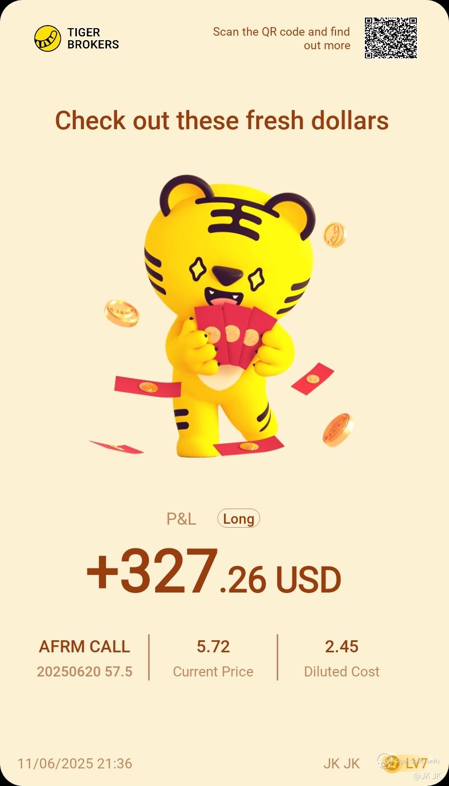 $AFRM 20250620 57.5 CALL$ aiming 1k profit