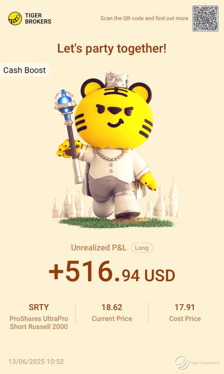 $ProShares UltraPro Short Russell 2000(SRTY)$ Make some money and buy gold for my wife. ahahahahah~