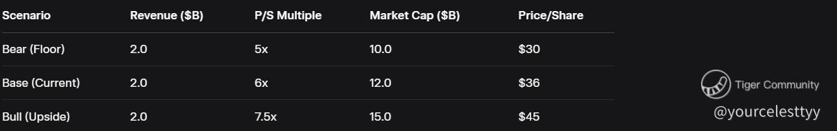 Bull Case: Profitability kicks in, users grow, and a 7-8x multiple holds. That could push it to $40-$45, a 20-30% jump.