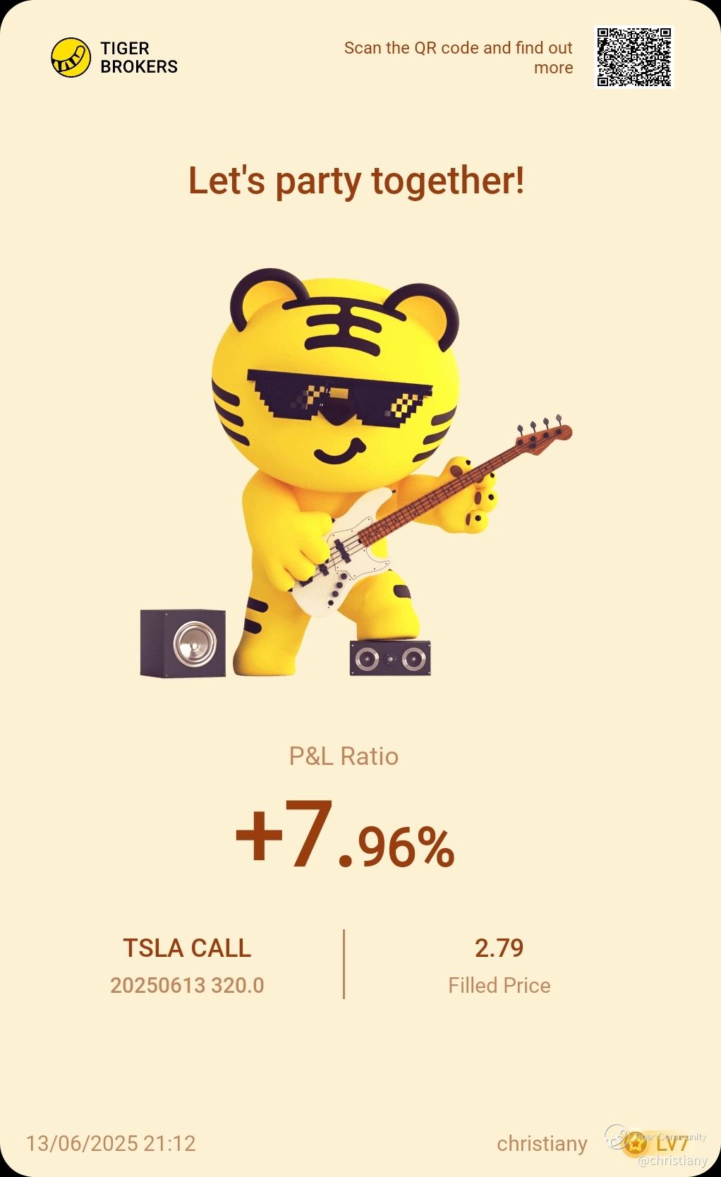 Scalping $TSLA 20250613 320.0 CALL$ . Entered the market late and exited too early [Facepalm]
