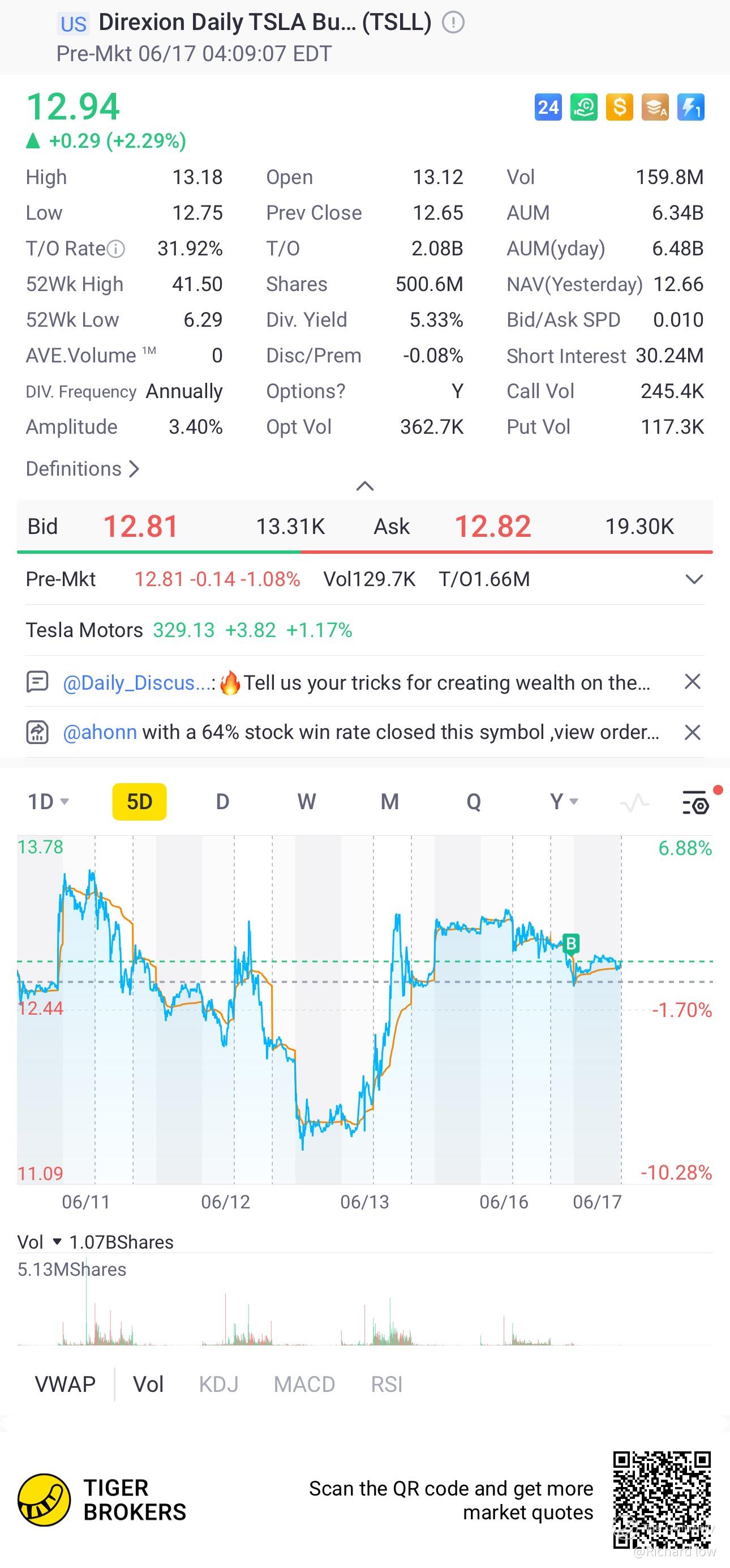 $Direxion Daily TSLA Bull 2X Shares(TSLL)$  report