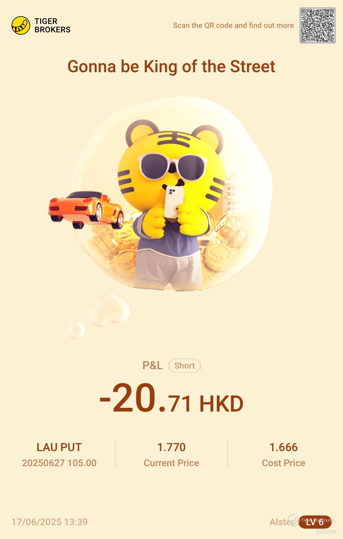 $LAU.HK 20250627 105.00 PUT$ took a risky bet, Li has fallen to a near support point, I don't think it can fall further than 106