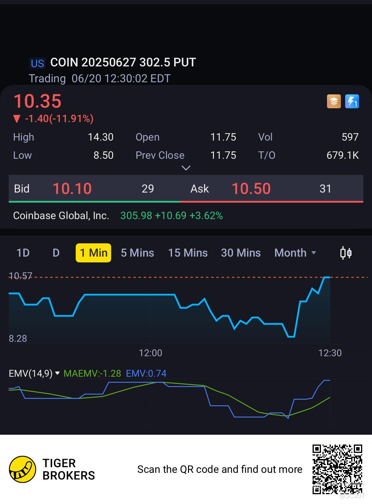 $COIN 20250627 302.5 PUT$ sold 2 lot, gain $200 in less than 1 hours [Happy] [Cool]