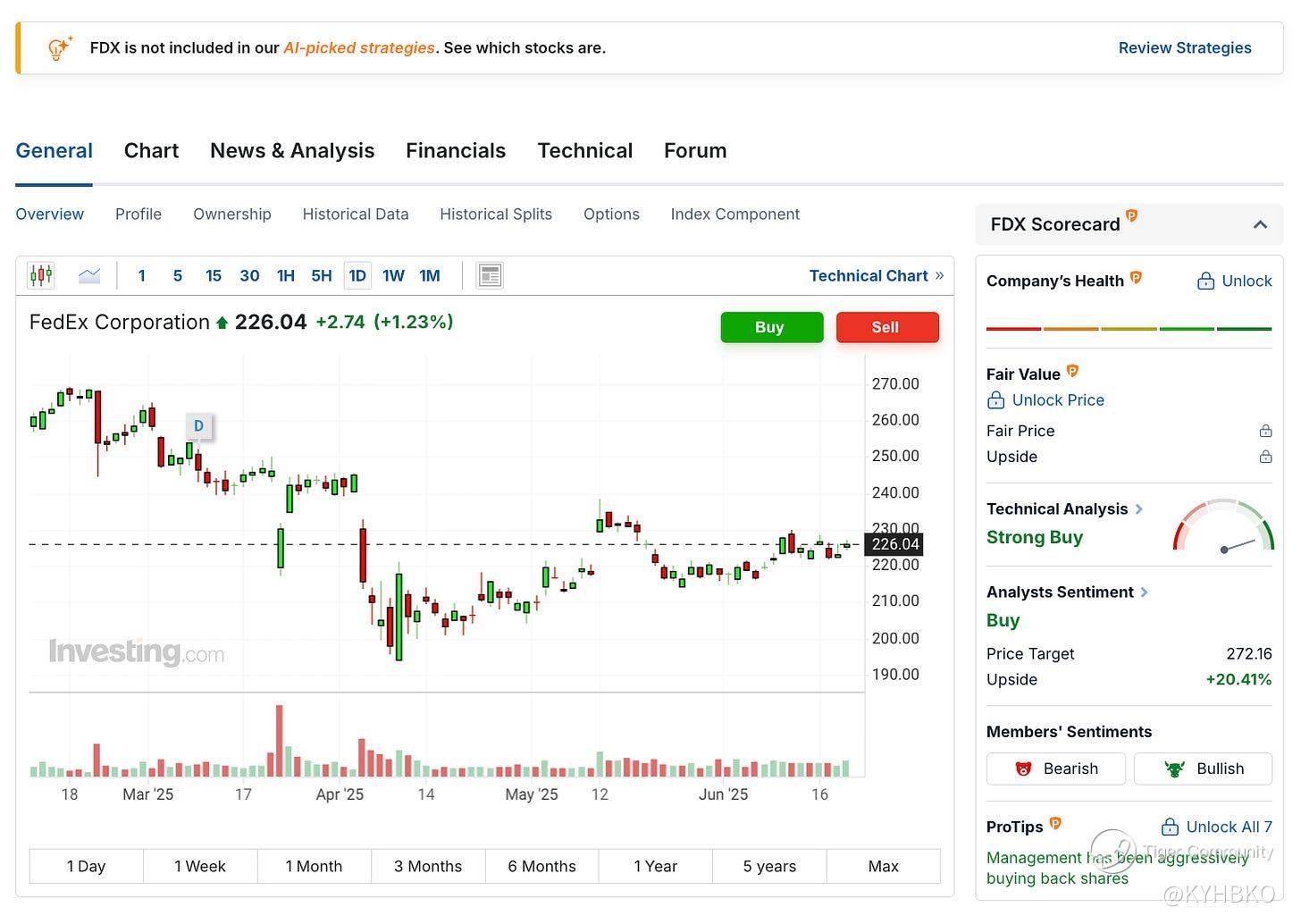 Valuation: The P/E ratio is 14.9, suggesting FedEx is reasonably valued relative to its earnings, aligning with its stable industry position.