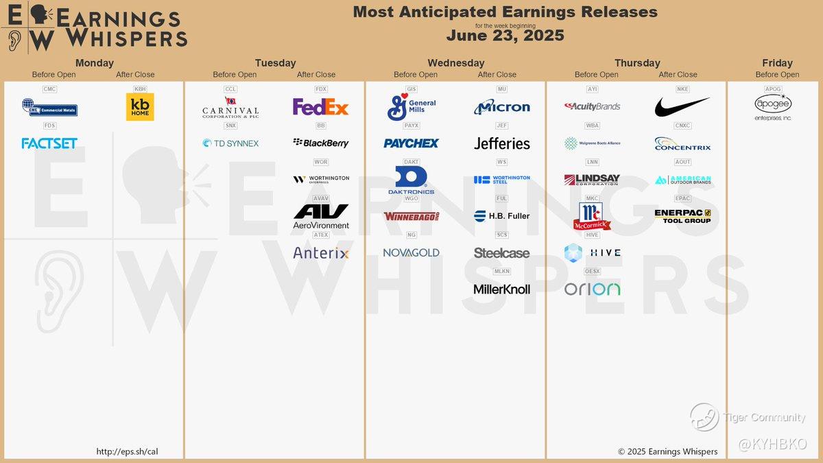 I am interested in the earnings announcements from Nike, Micron, FactSet and FedEx.