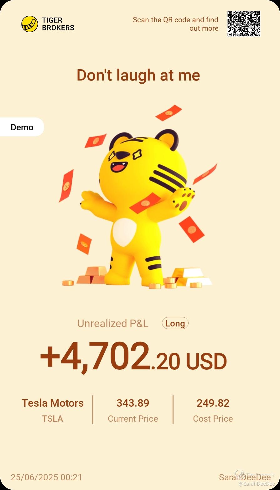 $Tesla Motors(TSLA)$ How far can you go? Working on my gumption to hold....practising having a long term view