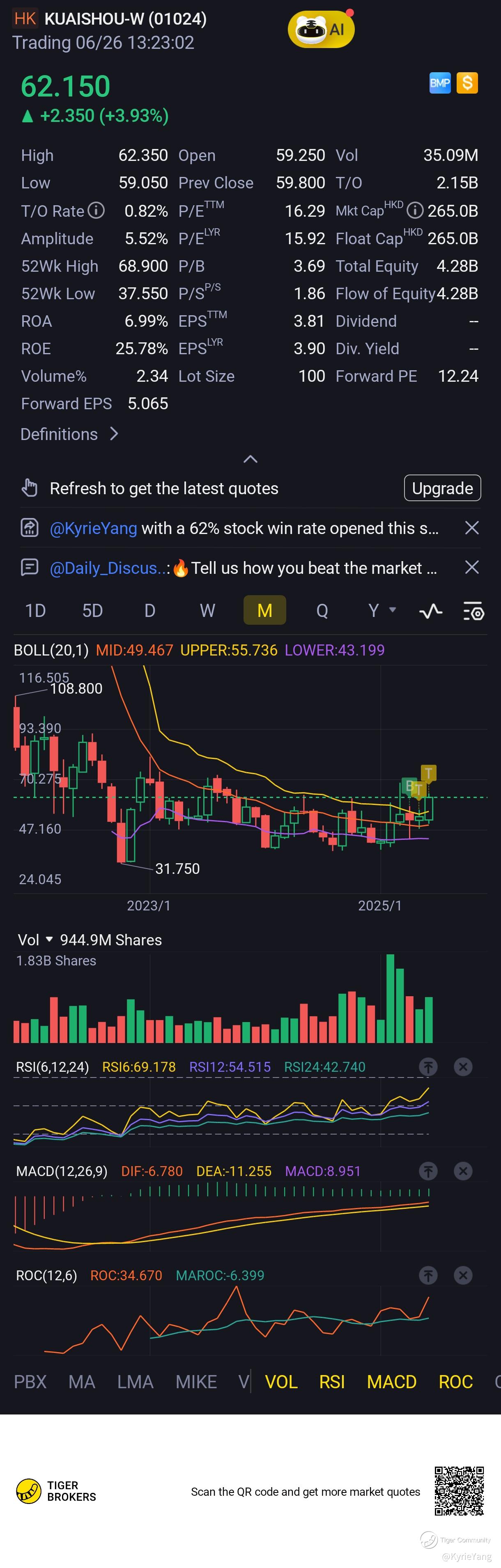 $KUAISHOU-W(01024)$ I just fully bet on this. I think it's about to rise. what do you think đ¤